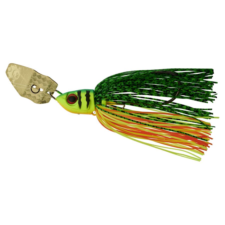 Le BLADE BLASTER sera votre nouvelle référence pour pêcher les zones peu profondes, lits d'herbiers et couverts végétaux. Ce bladed-jig a été créé en collaboration entre notre pêcheur ILLEX Pro-Staff Marc Ptacovsky et notre chef produit Thomas Vogels. Marc souhaitait combiner deux types de leurres en un. Tout d'abord conserver la forme de la tête Swim-Jig 'JUNGLE BLASTER' pour ses facultés : sa glisse parfaite sur les obstacles et sa pénétration à travers les herbiers. Cette forme idéale a été associée à une palette métallique de notre conception qui émet de véritables signaux attractifs qui confèrent à sa jupe en silicone volumineuse une nage très vibrante sur simple récupération et ce, dès que le leurre touche l’eau. La jupe est sécurisée par une ligature de fils d’acier inoxydable pour une durabilité plus longue face à la dentition du brochet. Un œillet a été disposé sous la tête pour monter une palette ou tout simplement pour ajouter un lest ILLEX 'JOHN WEIGHT' afin d'ajuster la profondeur de nage. Selon les conditions de pêche, le BLADE BLASTER peut être équipé d'un leurre souple comme trailer afin de lui apporter plus de volume ; de type 'pin-tail' comme notre MAGIC SWING TAIL 4 ou 5, de type 'shad' comme le MAGIC SLIM SHAD 4 ou 5 ou tout simplement d'une écrevisse comme la CHUNK CRAW. Bien entendu, le BLADE BLASTER est « sans plomb » ! Pensé et conçu principalement pour la pêche du brochet, il est également prédisposé pour la traque d'autres espèces comme la perche, le Black-Bass, le sandre et le silure.