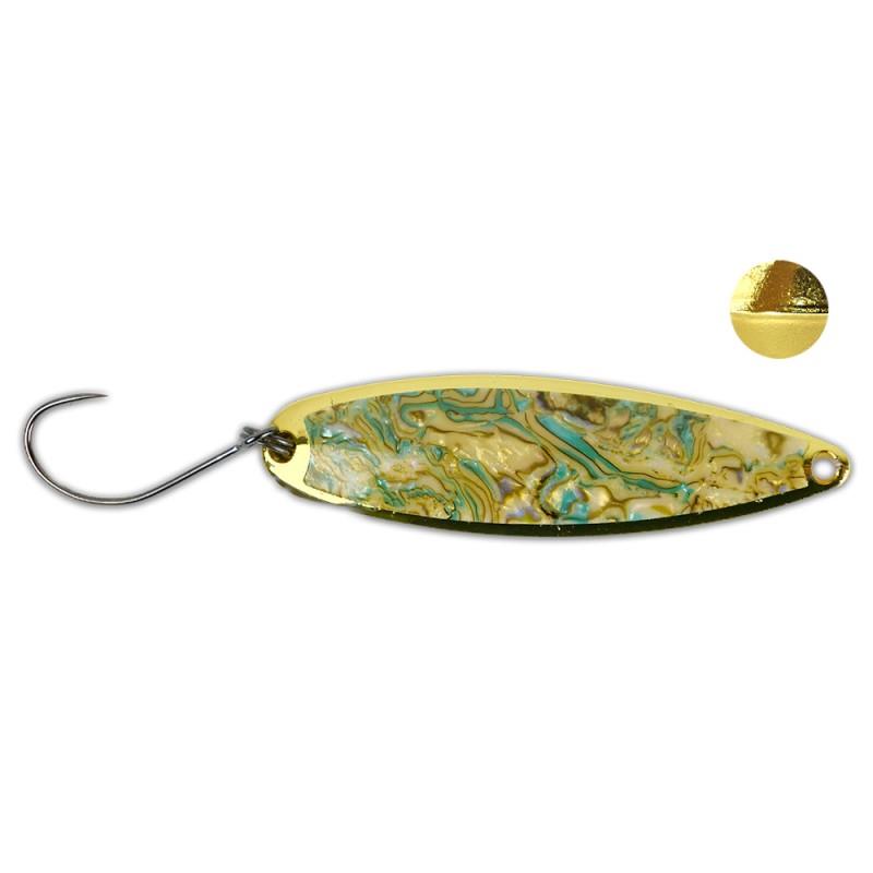 La cuillère ondulante a été minutieusement conçue pour imiter les mouvements naturels d'une proie blessée dans l'eau. Son profil finement travaillé et sa forme aérodynamique permettent des lancers précis et des récupérations fluides, attirant l'attention des truites les plus méfiantes.