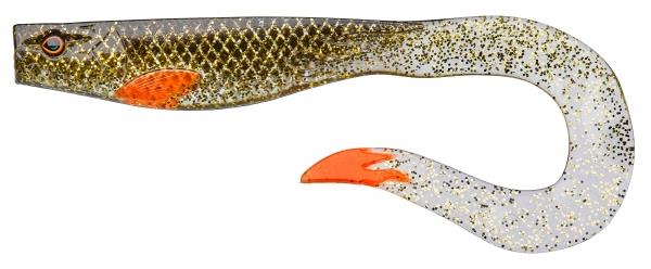 Le Dexter Eel 150 est un leurre souple anguilliforme qui a été conçu pour la traque des carnassiers. Il reprend certains atouts du Dexter shad notamment sa gomme à la fois souple et résistante, aromatisée à coeur par l’attractant crustacé « Nitro Booster ». Il peut être monté et utilisé de multiples manières (jig heads, hameçons offset wide gape pour montages texas ou weightless, comme trailer de swimming jigs, Crazy Crusher blade jig ou Crusher spinnerbait). La nage du Dexter Eel a été pensée pour amener une alternative aux gros leurres souples de type shad. Les ondes basses fréquences émises par le Dexter Eel sont ressenties de loin par la ligne latérale des carnassiers, mais n’éveillent pas leur méfiance. Ramené en linéaire, il peut être cranké rapidement sans décrocher pour battre du terrain. A vitesse de récupération très faible, il prend déjà vie ce qui permet de ralentir l’animation au passage d’une zone de tenue marquée. C’est aussi un atout pour déclencher l’attaque des vieux poissons qui voient en lui une proie lente et facile. Initialement conçu pour la traque du brochet specimen, il a aussi démontré lors des tests de grandes performances sur les gros silures mais également en mer sur les lieus et les maigres.
