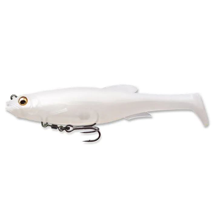 Le Mag Draft 6 de Megabass est un superbe swimbait destiné aux bass et aux brochets. Le matériau assez tonique va prendre vie dès la récupération. L’hameçon ventral est idéalement placé (les poissons ont tendance à attaquer par dessous sur les swimbaits), et surtout il est maintenu en place avec un aimant qui présente plusieurs avantages: l’hameçon a ses trois pointes dégagées mais ne pend pas pour autant, ce qui est plus efficace dans les pêches d’herbiers, lorsque le poisson est ferré il ne peut pas faire levier sur le corps du swimbait pour se dégager, et enfin il n’y a pas d’armature interne pour venir brider l’action du leurre. De plus l’hameçon est fixé sur un émerillon, ce qui limite encore les décrochés. Pour finir, le fait que l’armement se limite à un seul hameçon abîme moins les poissons qu’un simple + un triple, tout en favorisant l’aspiration (pas d’hameçon supplémentaire pour gêner). Bref un produit très bien conçu.