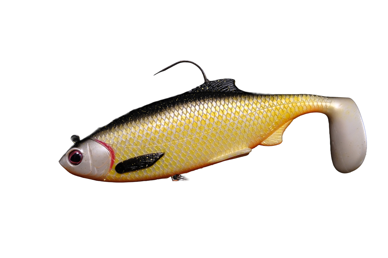 Version pré plombée de notre aimant à gros brochets Ricky The Roach 14cm. La queue courte vous permettra de faire évoluer Ricky tout en douceur à travers les différentes couches d'eau, tandis que sa large caudale de type 'shad' lui donnera une nage puissante et plus erratique. Quel que soit votre choix, ce leurre entrera en action dès qu'il tombera dans l'eau, observez son rolling serré, une pure merveille ! Il ressemble comme deux goutte d'eaux à un vrai gardon et il fait craquer les carnassiers à coup sûr. Un leurre parfaitement adapté pour la pêche en linéaire ou en jigging des gros sandres et des gros brochets.
