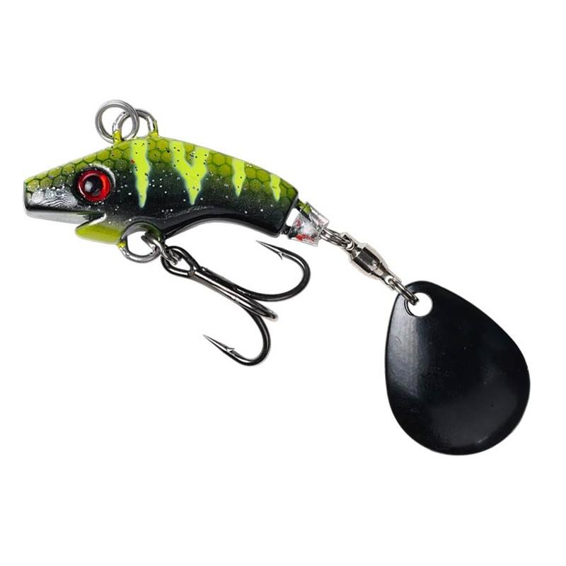 Ce Tail Spin est conçu pour une récupération en lancer-ramener ou une traction verticale. Son léger rolling ainsi que sa palette Colorado rendent ce leurre efficace 100% du temps, à la récupération comme à la descente. La palette est montée sur un émerillon rolling maintenu par une gaine en silicone, pour un fonctionnement fiable et fluide. Peint à la main avec un revêtement UV pour une durabilité et une visibilité optimale dans l'eau.