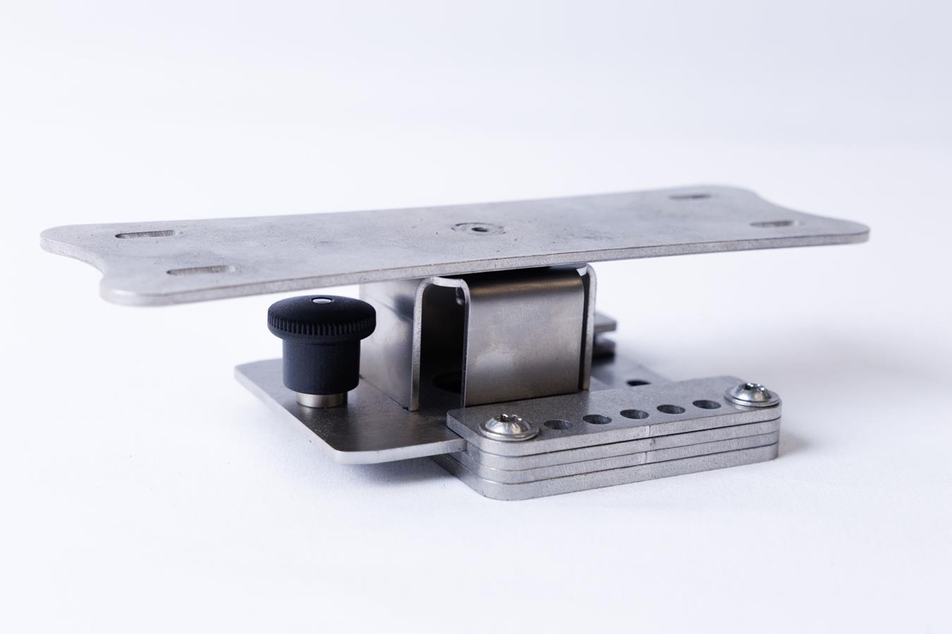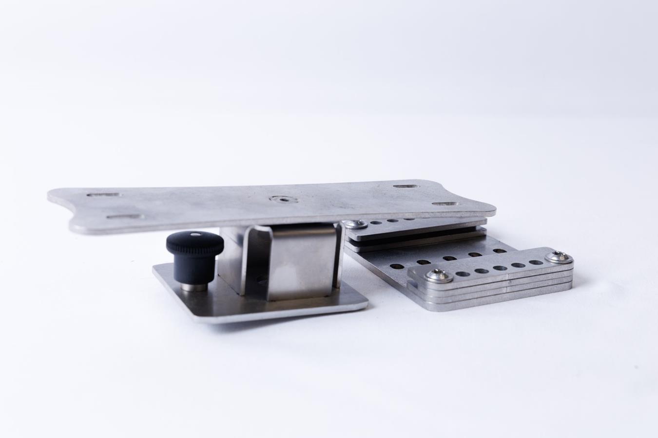 Ce support est basé sur les mêmes platines que les perches et les supports de perche. On peut donc l'adapter sur tous les supports existants (supports rail, support barque, etc), ce qui rend le sondeur amovible en un geste et ce qui permet de le fixer où l'on veut sur le bateau selon le type de pêche pratiquée.