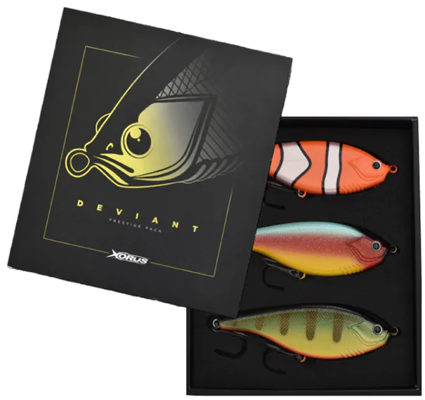 Jerkait devenu rapidement incontournable auprès des pêcheurs de brochet, le Deviant a séduit par sa polyvalence, sa facilité d’utilisation et son efficacité. Que l’on pêche des zones peu profondes ou des fosses, à vitesse lente ou très rapide, ce jerkbait vous permettra de bénéficier de toutes les qualités de cette famille de leurres tout en vous adaptant à l’humeur des brochets le jour J. Avec quelques coups de scions, il effectuera de brusques écarts latéraux tout en émettant beaucoup de bruit mais il est également possible de l’utiliser via une simple récupération linéaire pour déclencher une nage en « S » plus furtive … Il dispose d’une grosse bille interne qui lui confère une sonorité particulièrement grave et idéale pour stimuler l’agressivité des carnassiers. Notez également qu'un point d'attache positionné sous la gorge permet de lui fixer un lest additionnel afin de le faire évoluer plus en profondeur. Que vous soyez déjà conquis ou en quête de découverte, vous trouverez dans ce prestige pack trois coloris exclusifs pensés pour sortir des sentiers battus et proposer une alternative aux coloris plus classiques tout en conservant l’assurance d’avoir une référence incontestée au bout de votre ligne !